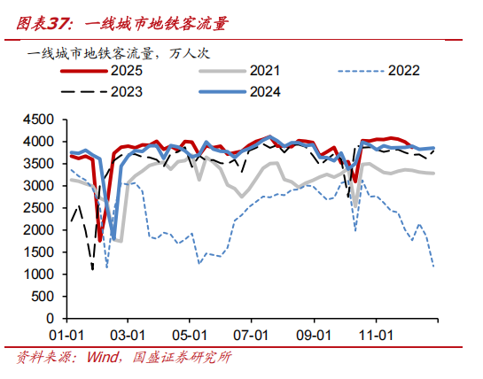 当周一线城市地铁客运量为3871万人次,前值为3997万人次;公路物流运价指数为1053点,前值为1066点;国内执行航班12359架次,前值为12484 架次。