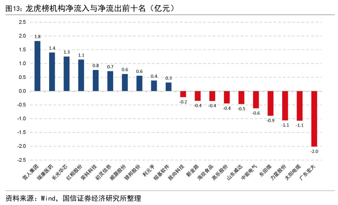 沪市主板取满足条件的前3名上榜,科创板、深市主板、中小板、创业板取满足条件的前5名上榜。20251208披露龙虎榜数据中,机构专用席位净流入前十的股票是雪人集团、瑞康医药、长光华芯、红相股份、荣科科技、初灵信息、顺灏股份、银邦股份、利元亨、榕基软件等,机构专用席位净流出前十的股票是广东宏大、太阳电缆、力星股份、东田微、中能电气、山东威达、高乐股份、海欣食品、新金路、致尚科技等,下图展示了今日龙虎榜披露的机构买卖股票中净流入与净流出的前十名,不足十名时直接取现有数量。
