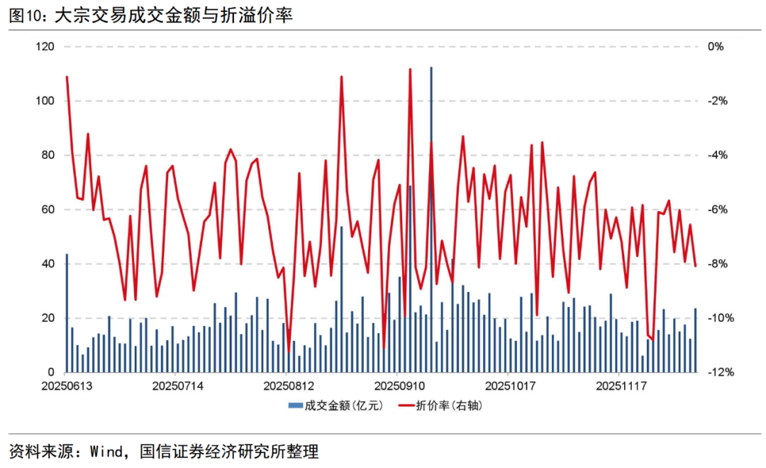近半年以来大宗交易日均成交金额达到20亿元,20251205当日成交金额为24亿元,近半年以来平均折价率6.47%,20251205当日折价率为8.08%,近半年大宗交易成交金额与折价率如下图所示。