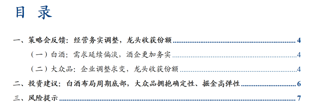 二、投资建议:白酒布局周期底部,大众品拥抱确定性、掘金高弹性
