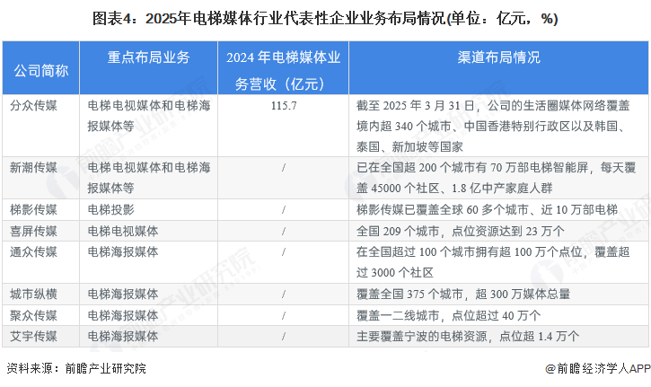 电梯媒体行业代表性企业业务布局情况
