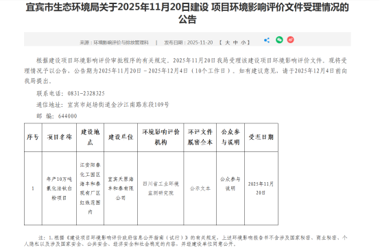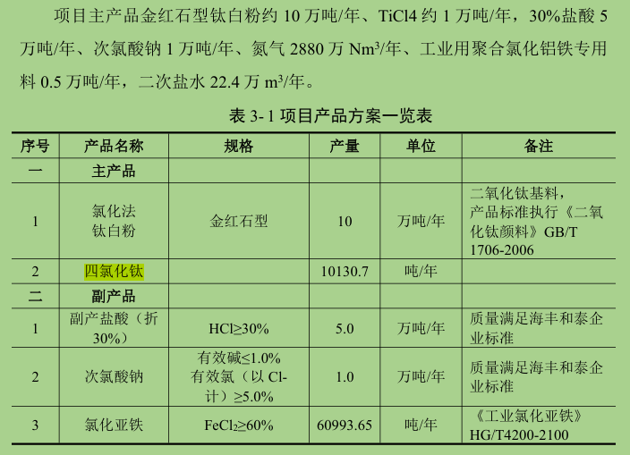 结合天原集团已掌握的技术及技术支撑情况,从项目风险、投资、经济效益和市场竞争能力考虑,宜宾天原海丰和泰有限公司拟在现有厂区内空地建设“年产10万吨氯化法钛白粉项目”,本项目投产后,宜宾天原海丰和泰有限公司氯化法钛白粉可达年产20万吨的产能。