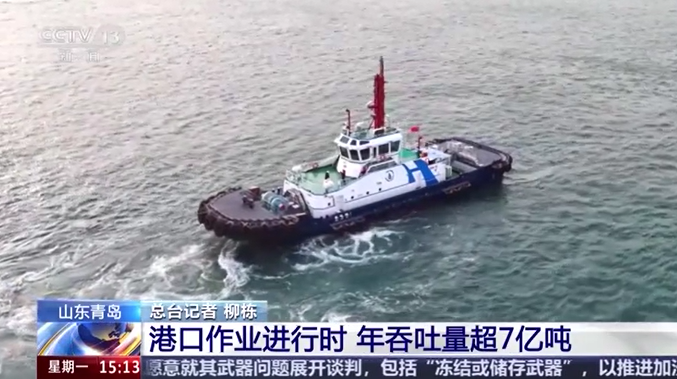 在山东青岛港集装箱码头的作业现场,记者在一艘船的甲板上,这艘船是今年6月刚投入使用的全国首艘氢电拖轮。记者从青岛港了解到,今年港口的货物吞吐量突破了7亿吨大关,其中集装箱的吞吐量也突破了三千万标准箱。这些数据的背后离不开港口工作者的辛勤付出,也离不开新能源、新技术的加持。
