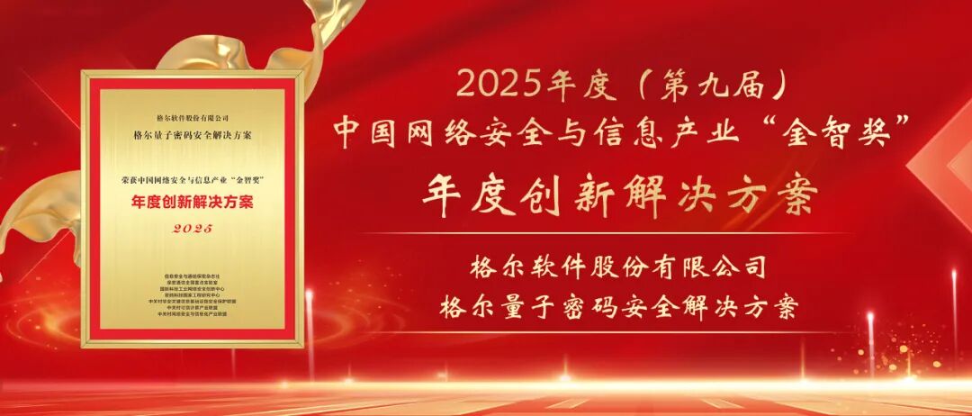近日,2025年度第九届中国网络安全与信息产业“金智奖”(以下简称“金智奖”)评选结果正式揭晓。在这场中国网络安全领域的权威评选中,格尔软件股份有限公司(以下简称“格尔软件”)凭借卓越的创新实力与前瞻布局,一举斩获双项殊荣:公司荣获“年度创新领航企业”,其研发的格尔量子密码安全解决方案同时荣膺“年度创新解决方案”奖项。