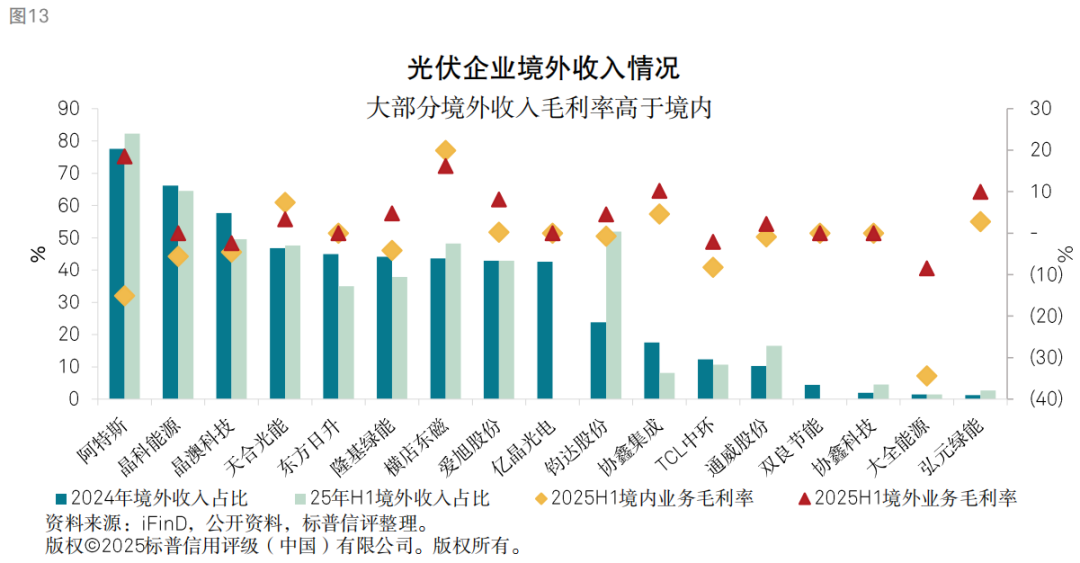 相比之下,仅依赖国内产能出口、产品结构单一或海外渠道薄弱的企业,在面对地缘政治波动、区域性政策调整(如碳关税、进口配额)或客户集中度过高等挑战时,抗风险能力明显不足。值得注意的是,境外销售通常享有高于境内的毛利率水平,一方面有助于缓解国内激烈价格竞争带来的利润压力,另一方面也在一定程度上对冲了行业整体供给过剩的影响。然而,海外市场并非无风险:本地合规要求、政治稳定性及汇率波动等因素,仍对企业全球化运营能力提出更高要求。