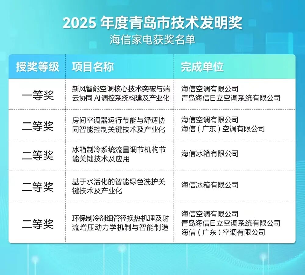 近日,山东省科学技术奖、青岛市科学技术奖分别对2025年度技术进步奖和技术发明奖进行评审结果公示,海信家电(SZ 000921,HK 00921)旗下冰箱、空调等产业公司7项科技荣誉入围名单。