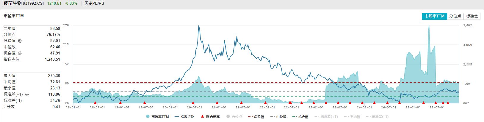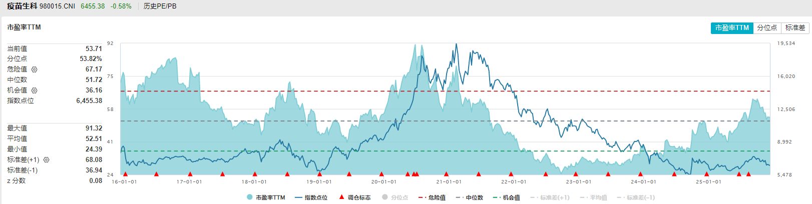 中证疫苗与生物技术指数是选取不超过50家业务涉及疫苗研发、疫苗生产、疫苗耗材、疫苗生产设备以及其他生物科技领域上市公司证券作为样本,目前成分股数量是43只,平均市值约205亿元。