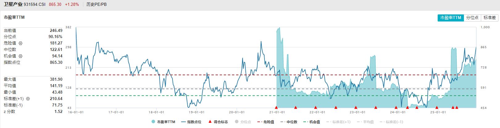 而中证卫星产业指数的市盈率TTM处在历史90%分位以上,不过实际的数据是从2021年初开始,因此可对比数据的时间区间实际上也还不到5年,只能说是近5年来估值相对比较高的位置。