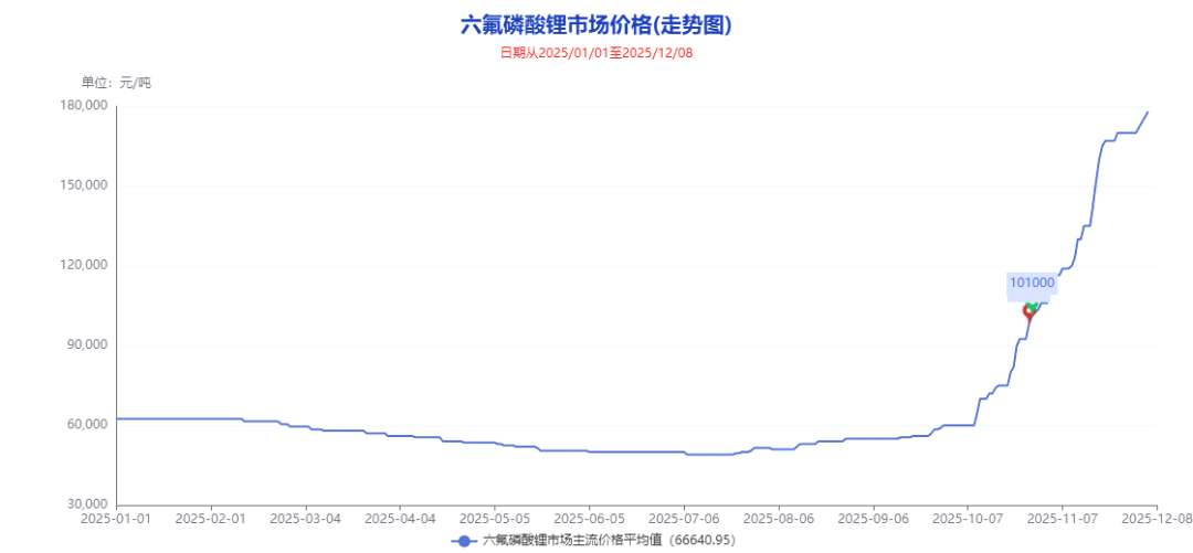 近期,锂电池关键原材料六氟磷酸锂市场价格呈现“火箭式”拉升,引发产业链高度关注。数据显示,其均价已强势突破17万元/吨大关,与今年7月的年内低点4.7万元/吨相比,涨幅惊人地超过240%。