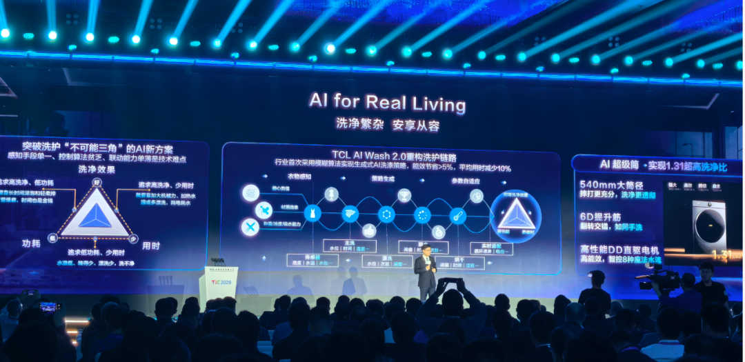 TCL实业首席技术官孙立讲了一个生动的故事:再传统不过的洗衣机如何拥抱AI。几十年来,这个行业一直绕不过一个“不可能三角”: