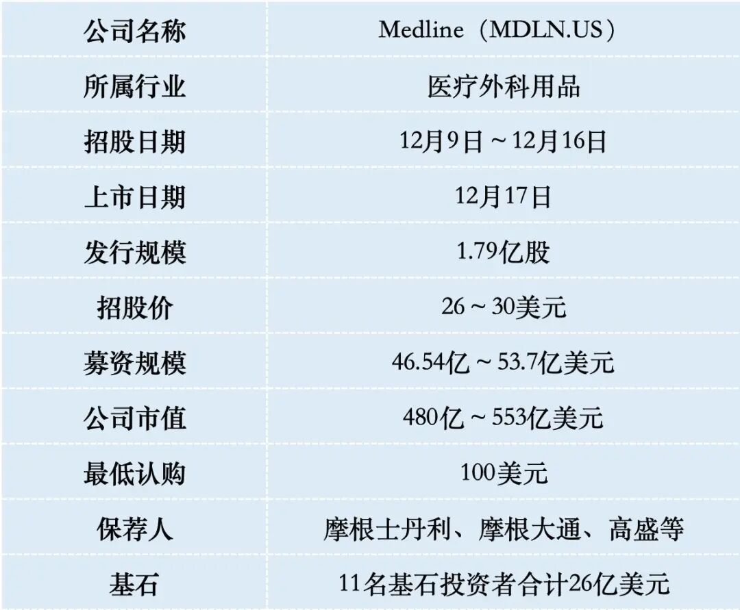 Medline此次IPO募资高达53.7亿美元,成为今年美股市场募资规模最大的新股,其中近半数股份被基石投资者锁定,这有助于股价稳定。然而,公司所处的医疗器械行业属于传统领域,缺乏爆发性增长题材。因此,不要对该股上市后的涨幅抱有过高期望,有得赚就行。