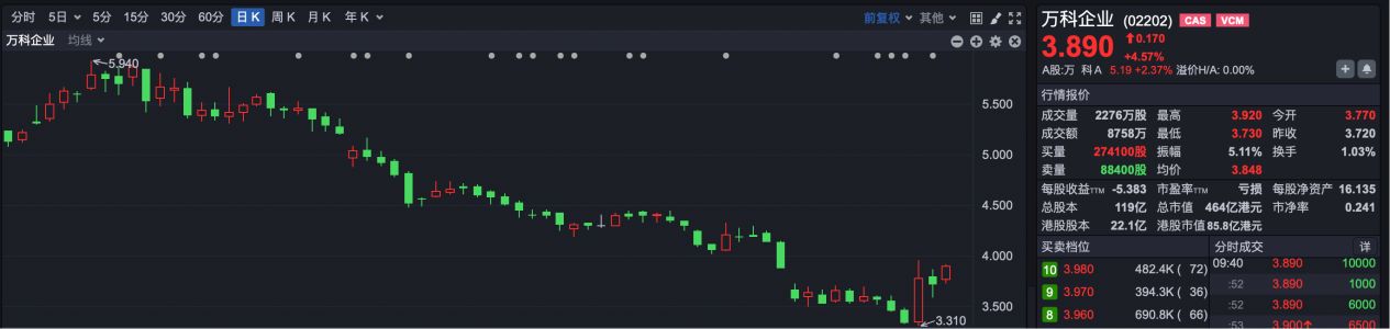 焦点公司方面,继12月10日大涨13%之后,今日万科企业(HK02202)早盘再度大涨,截至发稿,涨幅一度超过5%。