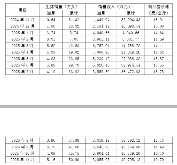 收购后,兴疆牧歌2023年亏损2.78亿元,2024年仍亏损9470.73万元,持续拖累公司业绩。据克明食品发布的11月生猪销售简报,从去年11月至今,猪肉价格还在持续走低。