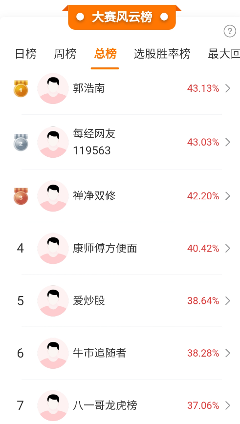 在每日经济新闻App举办的掘金大赛中,第79期比赛于周五结束,多位选手表现出色。其中冠军收益率43.13%,亚军收益率43.03%,季军收益率42.20%。本期比赛共807名选手取得正收益,他们都将获得现金奖励。