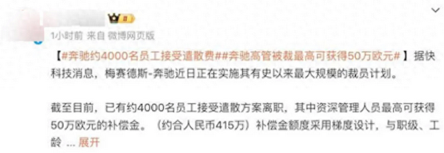 为加快执行进度,奔驰特别设置了“加速奖金”,鼓励员工尽早完成离职手续。
