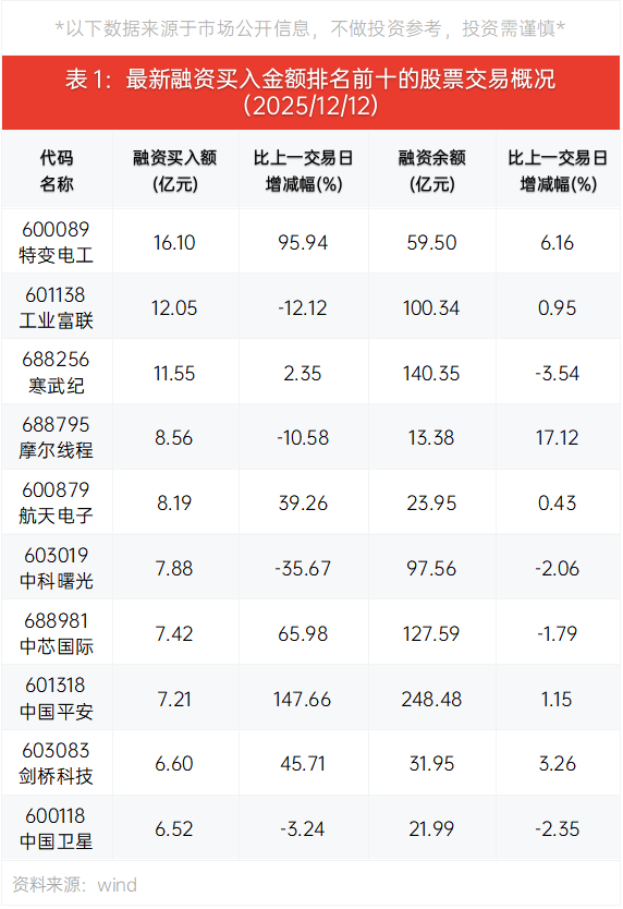 12月12日,融资资金流向显示,通信设备、电网设备、保险等板块净流入居前,净流入规模在1亿元以上的行业有7个;半导体、汽车零部件、电子元件等板块净流出居前。