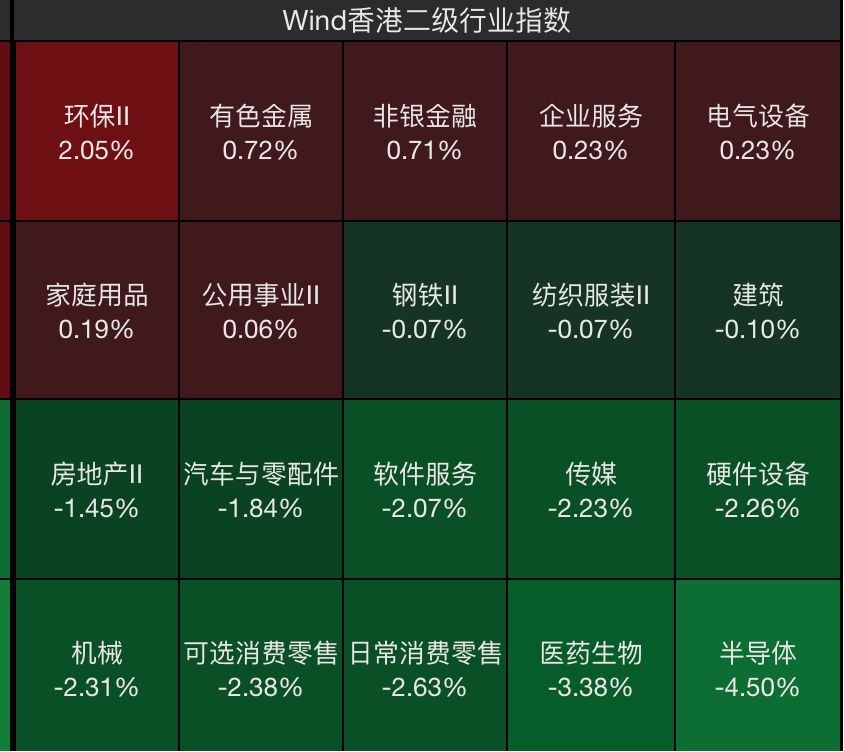 板块方面,半导体、医药生物、消费股等全线走低,有色金属、非银金融等板块逆势走强。
