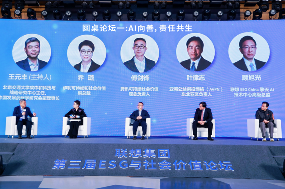 圆桌论坛环节,围绕 “AI向善,责任共生”“ESG驱动商业模式创新”两大主题,论坛邀请跨领域代表开展圆桌对话,共同探寻可持续发展的创新实践方向与落地路径。