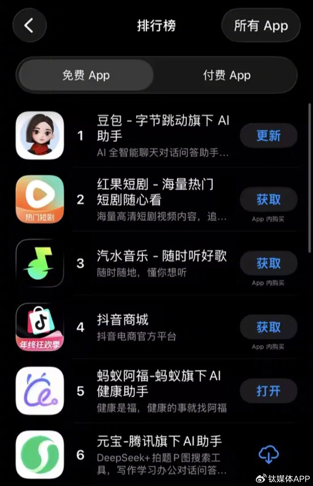 近日,蚂蚁旗下AI应用“蚂蚁阿福”在行业引发广泛关注。应用上线仅数月,月活突破1500万;昨日App新版发布后,更是一举超越元宝、跻身苹果应用商店下载榜第五位。这一现象背后,折射出C端AI应用发展逻辑正逐步演进,从“入口争夺”,走向“关系构建”与“垂直深水区”的价值再造。