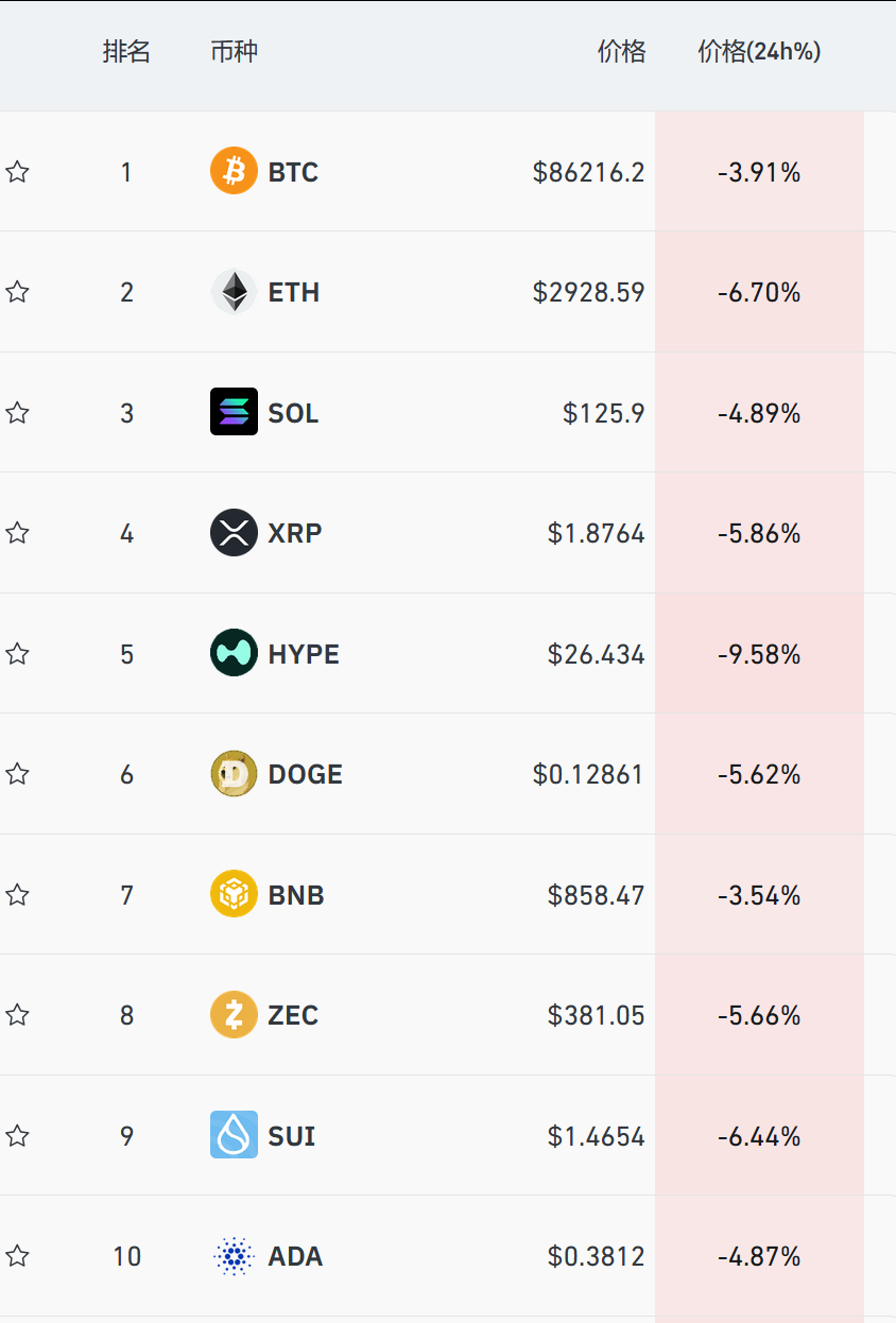 12月16日盘中,比特币跌破8.6万美元,截至发稿跌幅近4%。以太坊跌超6%,狗狗币、XRP跌超5%。Coinglass数据显示,24小时内,加密货币全网合约爆仓超6亿美元,爆仓人数高达19万人。