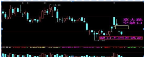 因为有利好消息涨停板开盘,但空头力量太大,涨停板那天蜂拥出逃,那些投机的投资者抱有幻想杀入,当日被套,次日这些被套资金寻求回补做T+0虽有冲高但毕竟还是有筹码留在里面,主力直接跳空低开留有一个大缺口,虽然大盘也有缺口,但该股缺口明显大于大盘,空方逃跑意愿非常强烈,后面大幅缩量不少前面买的投资者已经套牢,惜售,不愿意止损抱有幻想,如果再行低开收出阴线那么将会加速寻底的过程。
