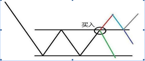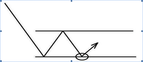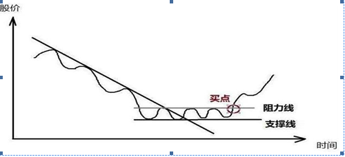 2、当一个股票在下跌趋势中,完成一次的震荡之后,拒绝新低的出现,并再次向上(而被突破)时,此时意味着空头力量衰减,市场暂时均衡,但此时并不需要急于买入,以防震荡后继续重归下跌趋势