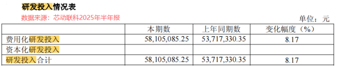 数据显示,2025年上半年,芯动联科研发投入5800万,并几乎全部费用化了,主要对Z轴陀螺仪持续进行研发迭代、提升性能等,继续巩固技术壁垒,保持超高的盈利能力。
