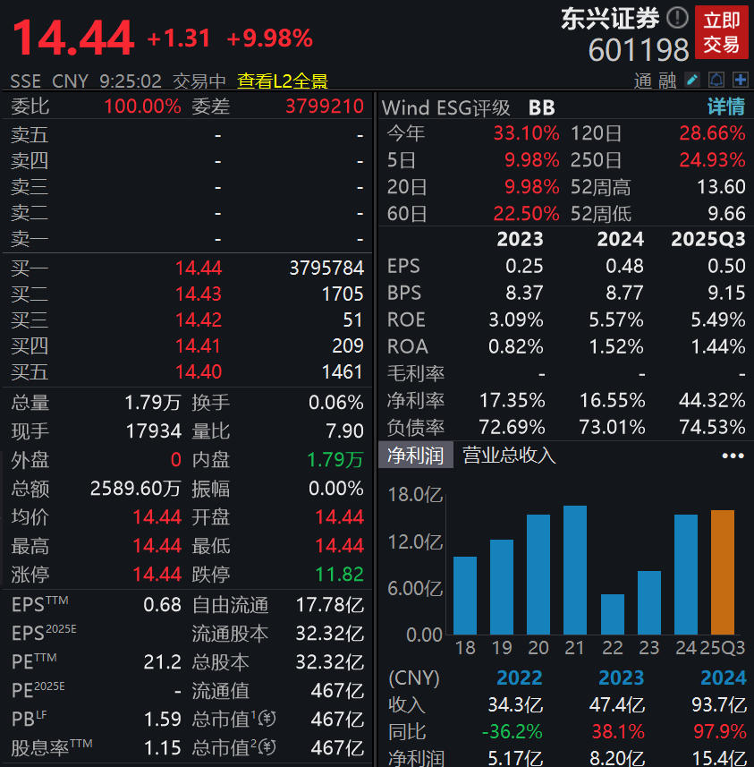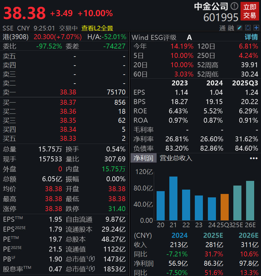 中新经纬12月18日电 18日早间,中金公司复牌涨停,股价报38.38元;东兴证券复牌涨停,股价报14.44元;信达证券复牌涨6.80%,股价报19.00元。