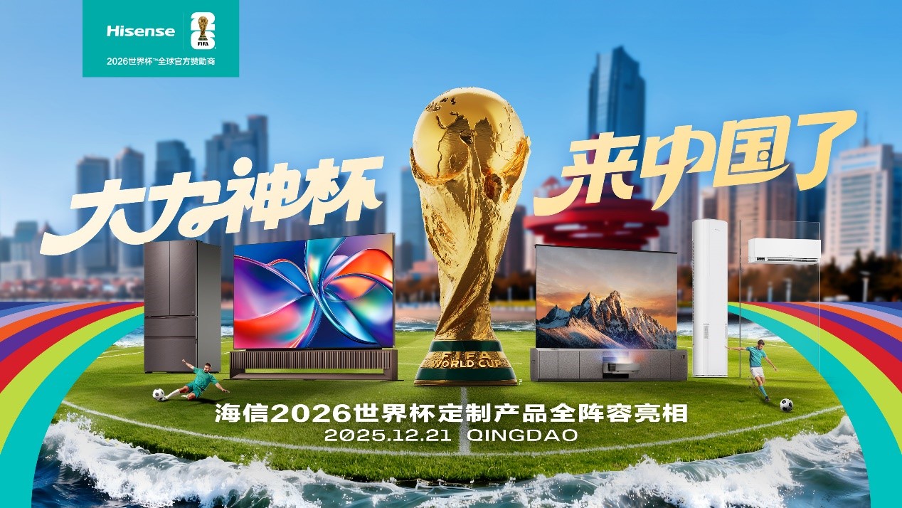 此次活动不仅带来了近距离观摩大力神杯的机会,海信2026世界杯定制产品全阵容也将迎来亮相,包括116英寸RGB-Mini LED电视、海信璀璨U6新风空调、海信璀璨真空舱650等以及海信大薄荷套系家电等将为球迷带来沉浸式的看球新体验。