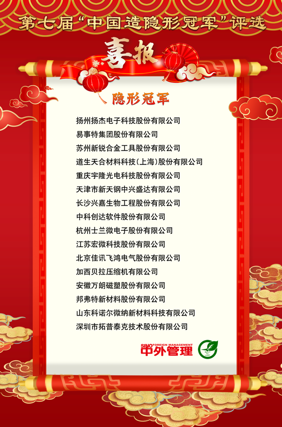 创办于1991年的中外管理传媒,见证了中国市场经济发展的全过程,并在新世纪凭借30余年的深厚积淀,以其独特的品牌影响力和敏锐的时代洞察力,于2017年联袂18位在国内外具有专业权威的企业经营管理专家,共同发起了国内一项具有国际专业背景及水平的专精特新企业纯公益年度评选——“中国造隐形冠军”评选。