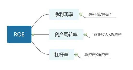 杜邦模型告诉我们, ROE=净利润率*总资产周转率*财务杠杆率。净利润率=净利润/营业收入;资产周转率=营业收入/总资产;杠杆率=总资产/净资产。细心的朋友看下图会发现三个比率乘起来通过约分最终变成了净利润/净资产,那这就是ROE原始的公式。