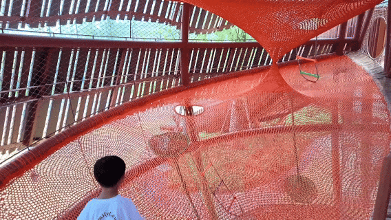 孩子们通过拓展连桥进入,跟随梅花桩、晃桥、攀爬等设备进入野果内部,在果实里尽情地蹦、跳、躺,在多层魔网之间自由穿梭。