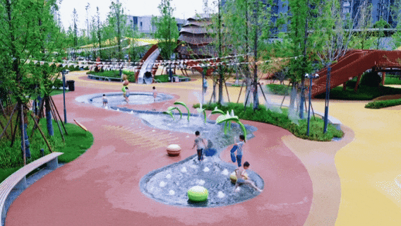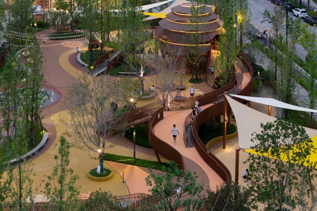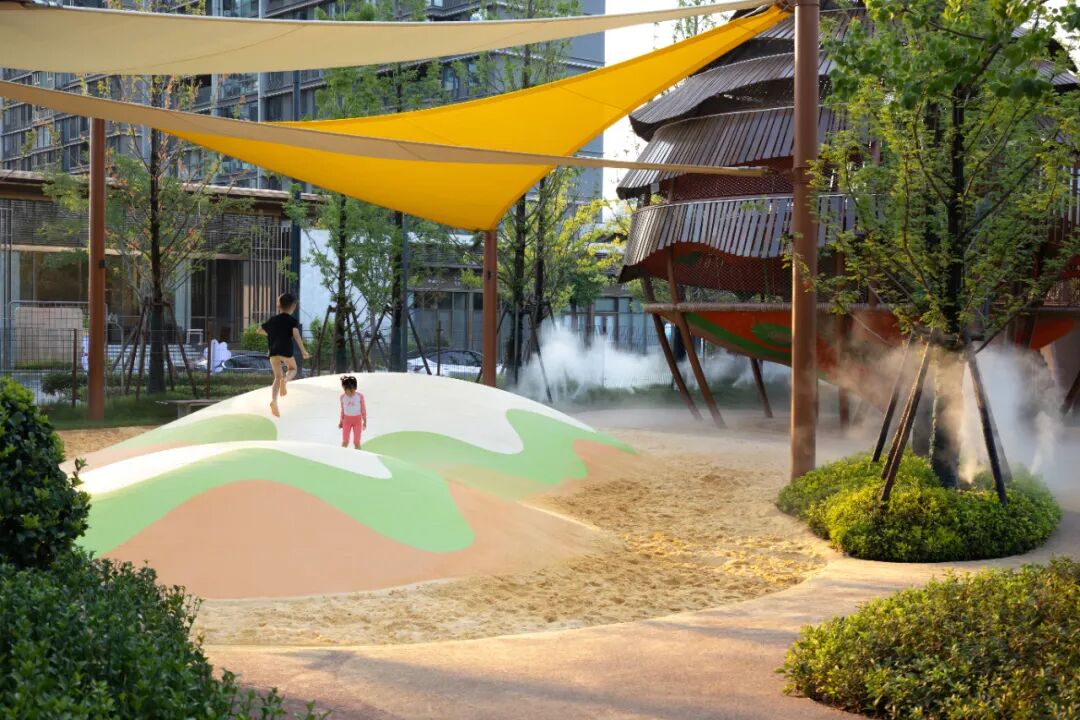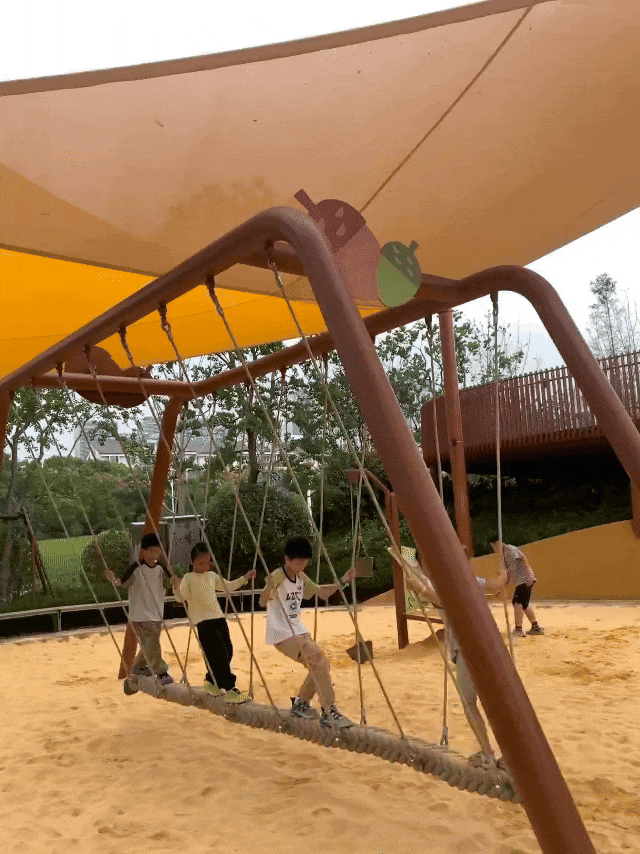 例如,设计团队在保留原有廊桥结构,并聚焦设备玩法、色彩、铺装,力争让焕新后的场地与“自然野趣”的主题完美呼应。