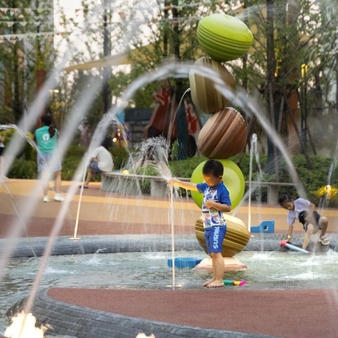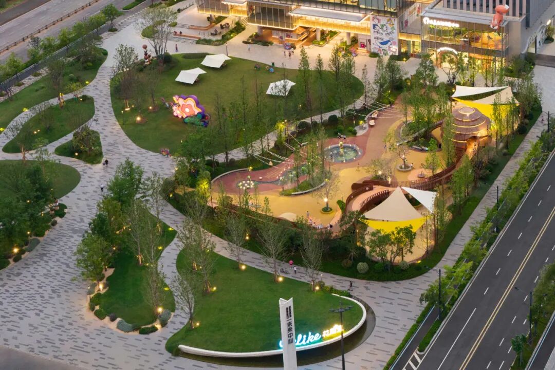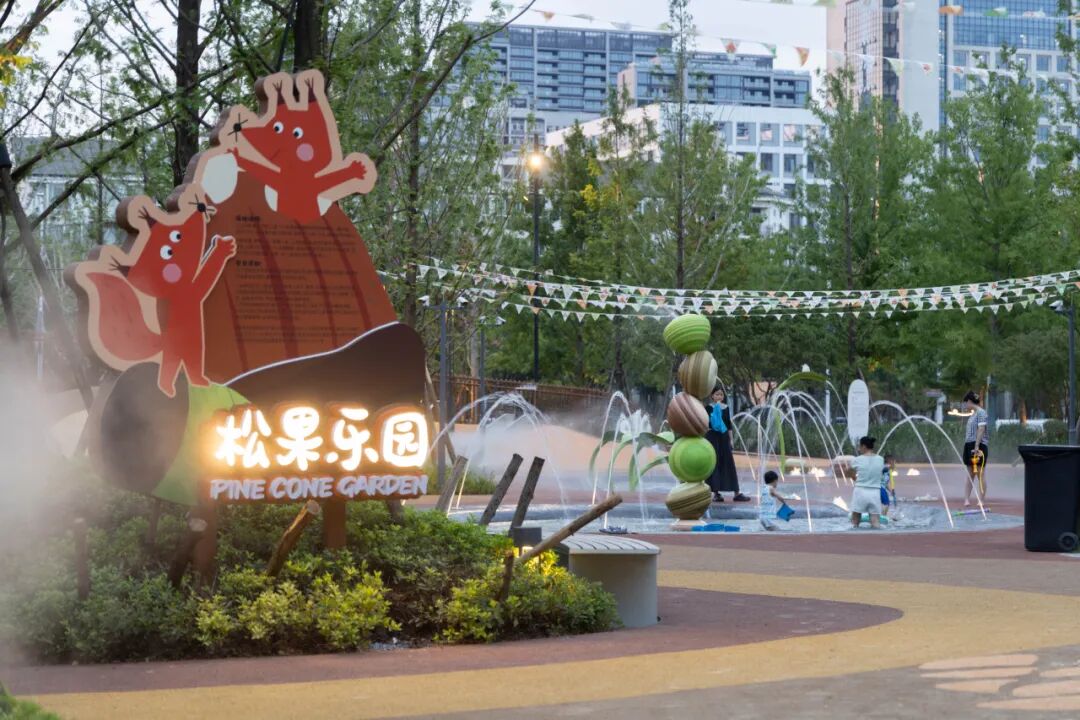 其次,设计团队将原来约10000平方米的示范区景观改为为公园式商业空间,有针对性地植入高实用性、高互动性的内容。例如,增设专属的宠物友好“狗狗乐园”;打造开阔的多功能活动大草坪,使公园从“可看”变为“可用可玩”。同时,将改造重点聚焦在乐园的升级改造上。