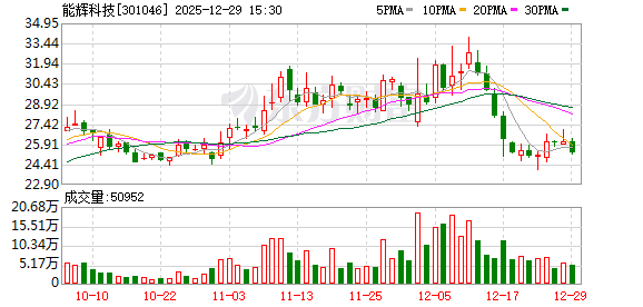 二级市场方面,能辉科技股价今日下跌2.99%,近五个交易日涨幅为1.08%。