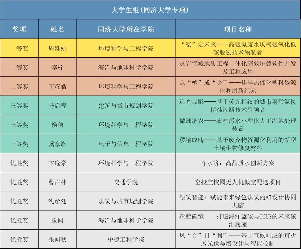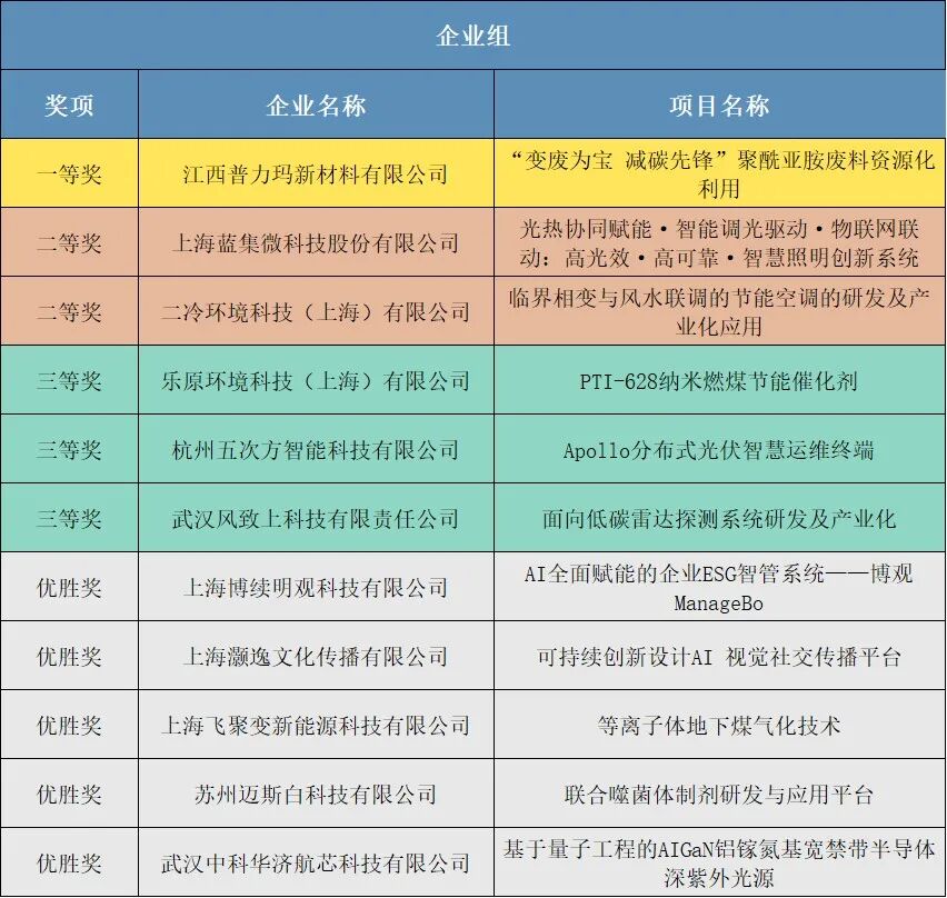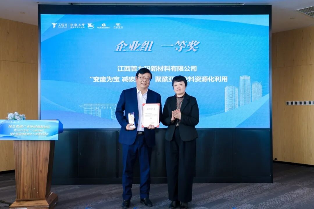 活动现场进行了项目颁奖,共颁发一等奖2项、二等奖4项、三等奖6项。其中,江西普力玛新材料有限公司的“聚酰亚胺废料资源化利用”项目与同济大学学生周姝妍团队的“高氨氮废水厌氧氨氧化低碳脱氮技术”分获各组别一等奖。