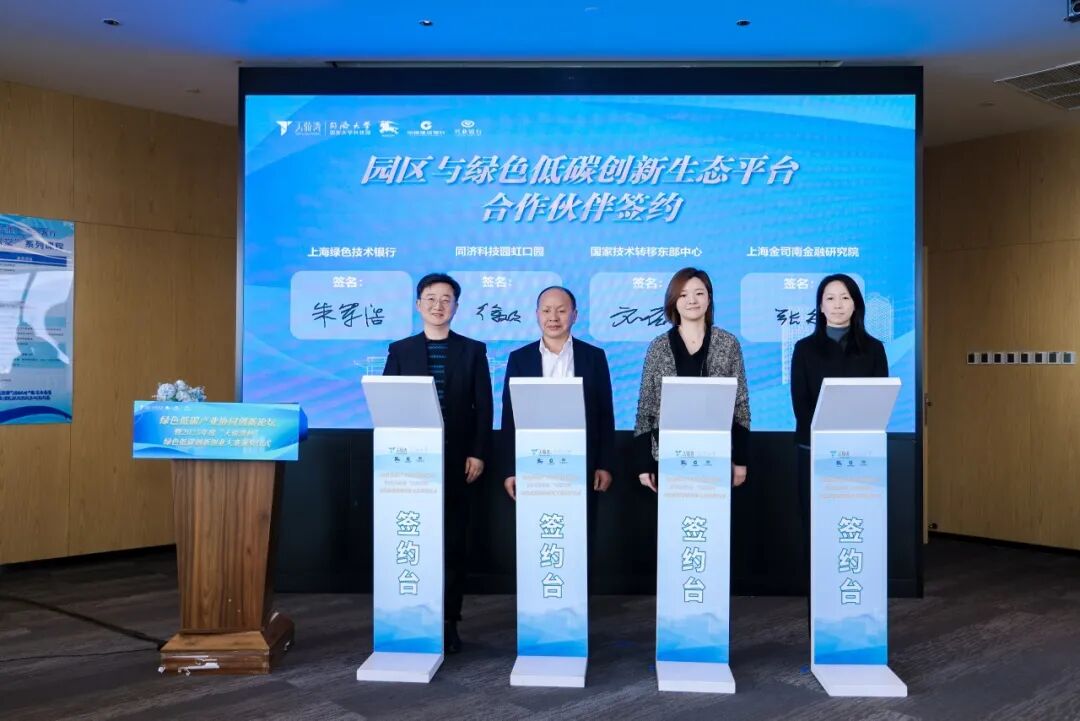 园区分别与上海市环境工程技术协会、上海市节能工程技术协会、同济大学碳中和研究院、国家技术转移东部中心、上海绿色技术银行、上海金司南金融研究院等单位签订创新生态平台合作伙伴协议,共同构建绿色低碳创新生态平台。