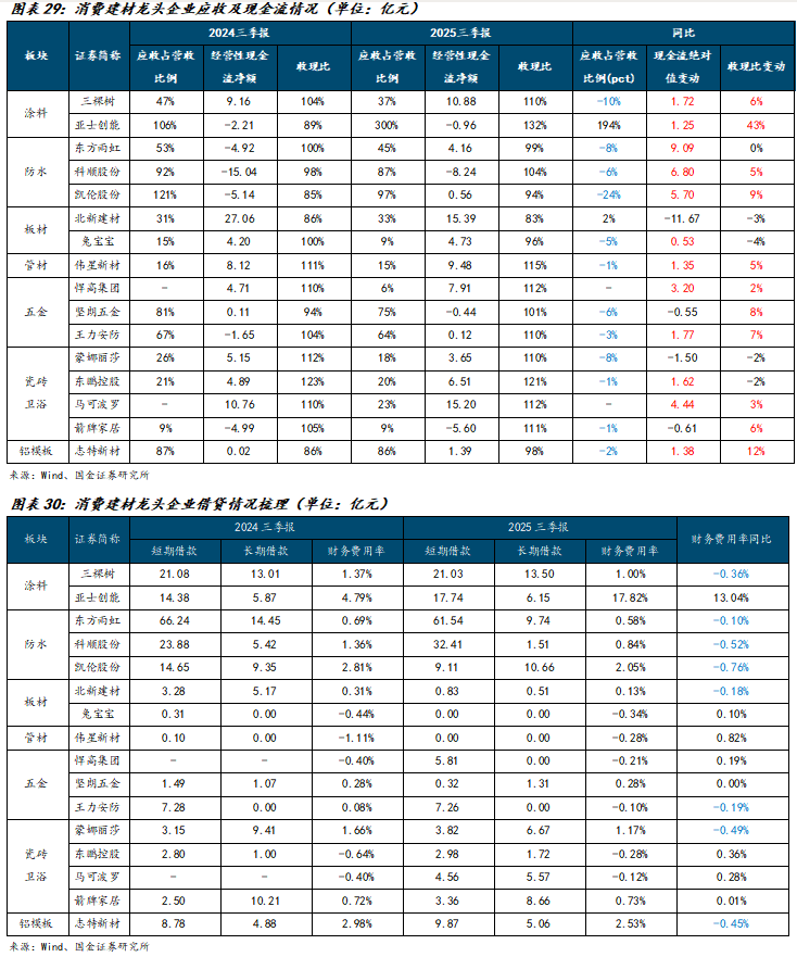 单个企业角度,东方雨虹、凯伦股份、三棵树、东鹏控股、坚朗五金、王力安防、悍高集团、蒙娜丽莎、马可波罗等销售费用率明显下降,25Q1-3分别下降1.7、1.5、0.9、0.9、0.7、0.7、0.5、0.5、0.5pct。