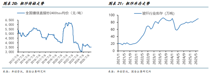 (1)供给端:中性测算2026年行业粗纱净新增产能(注意是指净新增)15.5万吨,2025年同一指标预计为73万吨,2024年国内玻纤行业总产量为756万吨,对应2026年有效产能增量估计约4%,供给压力明显减缓。
