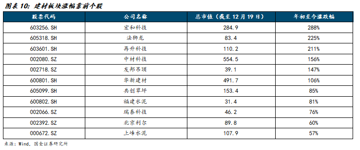 10-11月市场风偏下行,建材内部突出子板块为①出海,例如水泥/瓷砖出海,②红利标的。12月中下旬AI电子布方向再次得到市场关注、为春季躁动蓄势。