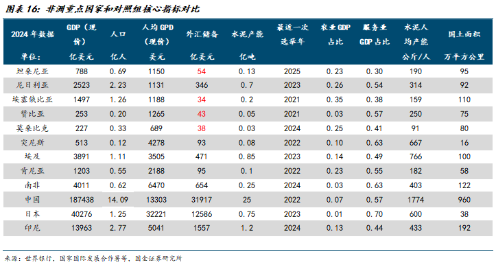 基建依赖度>房建:非洲基建水泥依赖政府投资,例如埃塞俄比亚复兴大坝高达1100万立方米混凝土总需求,穿透后直接关联产业结构(创汇和税收能力)、政府举债比例、FDI投资、本币汇率稳定性等宏观指标。此外,老百姓青睐自建房,非洲房地产开发难以对标国内。