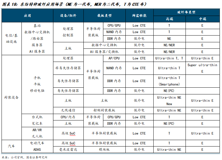 Low-CTE,通信产品、消费电子等对于内部芯片集成度与算力速度提升,芯片尺寸由小变大,在PCB组装焊接时会发生焊点开裂等问题,采用Low CTE材料可降低热应力、提高焊点可靠性。Low-CTE电子布预计已成为载板环节供给约束,日商三菱化学发出通知,因Low-CTE玻纤布原料短缺、以及订单需求增加,导致其BT载板材料交期大幅拉长,目前部分Low-CTE玻纤布交期达16-20周。