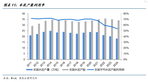 (2)产能端:查超产、产能置换政策有望推动供给端边际改善。2024年5月,国务院印发《2024—2025年节能降碳行动方案》,提出到2025年底全国水泥熟料产能控制在18亿吨左右;2024年10月,工信部印发《水泥玻璃行业产能置换实施办法(2024年本)》,旨在加严水泥置换要求,明确水泥熟料低效运行产能不能用于置换等,推动备案产能与实际产能统一;2024年10月,工信部印发《关于进一步规范水泥行业产能管理》,作为内部文件下发,要求熟料水泥生产线实际年产量不得超过备案年产能(年产能=备案日产能×生产天数)等;2025年9月,工信部等六部门联合印发《建材行业稳增长工作方案(2025—2026年)》,提出水泥企业要在2025年底前对超产产能制定产能置换方案,促进实际产能与备案产能统一。