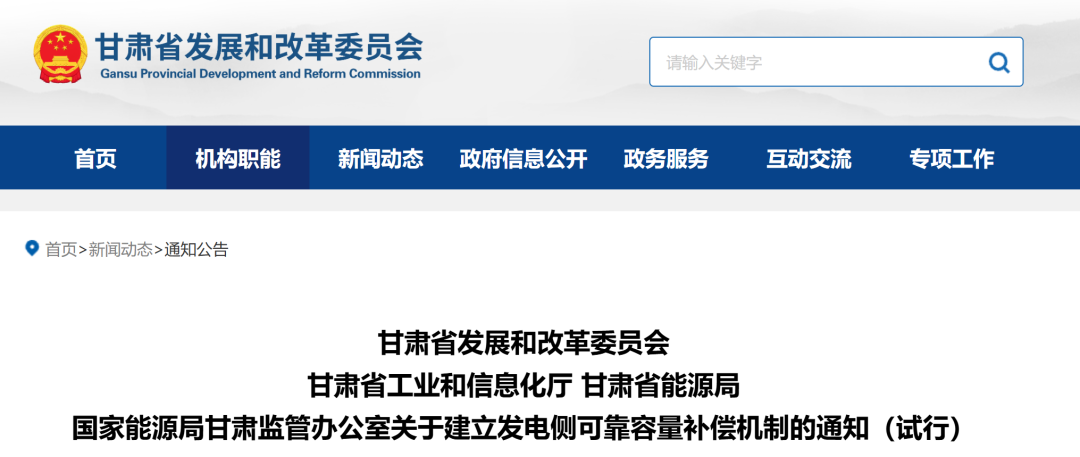 储能与电力市场获悉,12月31日,甘肃省发展和改革委员会、甘肃省工业和信息化厅、肃省能源局、国家能源局甘肃监管办公室发布《关于建立发电侧可靠容量补偿机制的通知(试行)》。