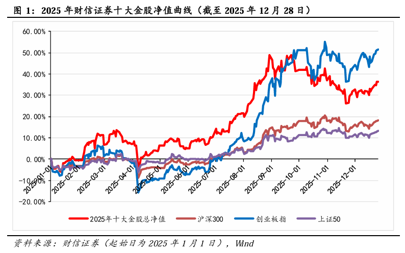 2025年财信证券十大金股深耕基本面,同时把握科技成长风格,截至2025年12月28日,2025年财信证券十大金股累计上涨36.45%,跑赢同期沪深300基准指数18.09个百分点。