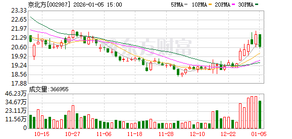 二级市场方面,京北方今日收跌4.37%,近5个交易日上涨1.48%。
