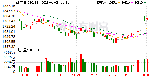 今日(1月8日),在三大指数小幅震荡的背景下,AI概念股集体走强,AI医疗、AIGC、AI智能体等AI应用方向领涨。其中,宝信软件、久其软件直线拉升至涨停,汉得信息也一度触及20%涨停。截至午间收盘,AI方向涨停或涨幅超过10%的个股超过30只。