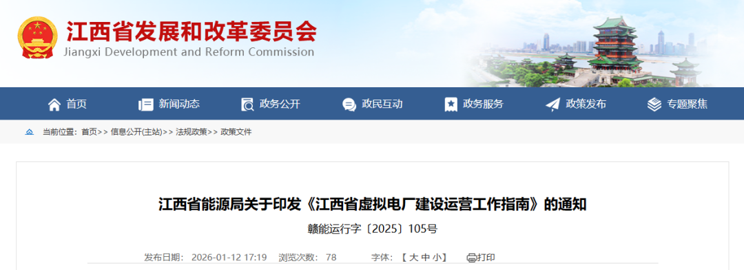 为贯彻落实国家发展改革委、国家能源局《加快构建新型电力系统行动方案(2024—2027年)》(发改能源〔2024〕1128号)、《关于加快推进虚拟电厂发展的指导意见》(发改能源〔2025〕357号)等文件精神,规范开展虚拟电厂建设和运营管理工作,引导和推动虚拟电厂健康发展,省能源局编制了《江西省虚拟电厂建设运营工作指南》。现予以印发,请遵照执行。