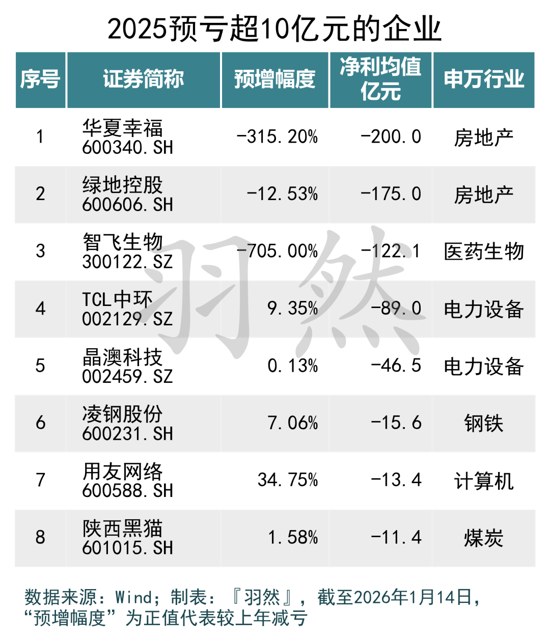 然而,另一方面,亏损企业名单同样触目惊心。地产行业成为“重灾区”,华夏幸福、绿地控股分别预亏200亿元和175亿元,主要因存货减值计提规模较大,显示地产行业调整仍在深化。