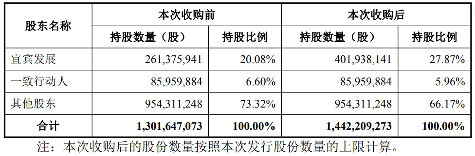 定增完成后,宜宾发展对天原股份的持股比例将显著提升。收购前,宜宾发展直接持股20.08%,与其一致行动人合计持股26.68%。按发行上限计算,本次收购后,宜宾发展的直接持股比例将增至27.87%,其与一致行动人的合计持股比例将达到33.83%,控股权进一步夯实。